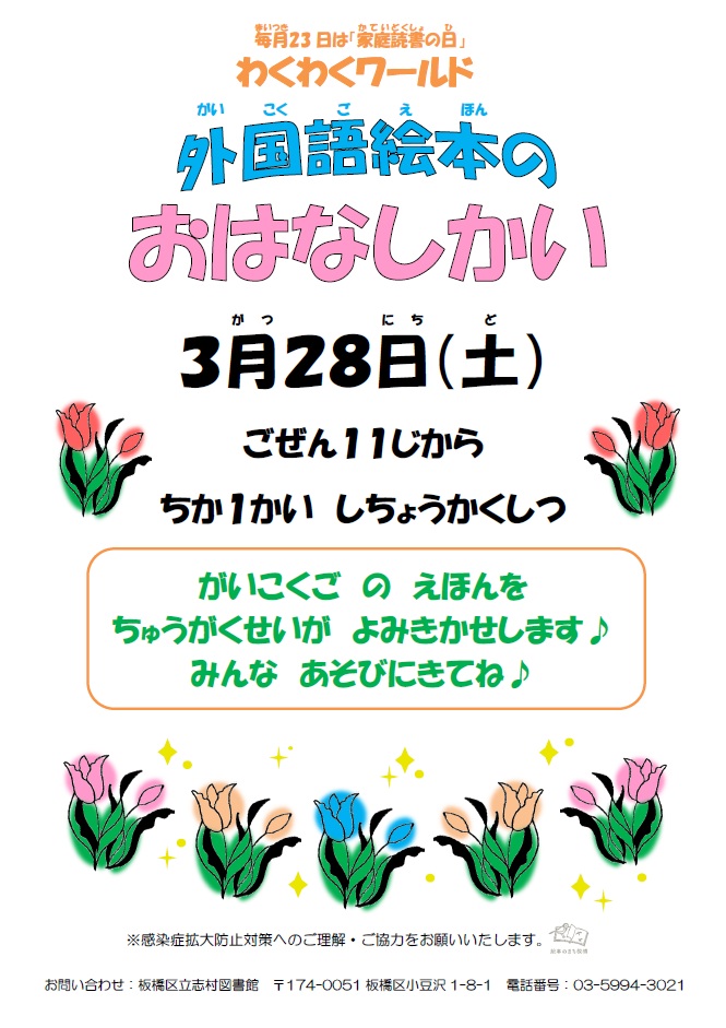 2026.3.28「わくわくワールド 外国語絵本のおはなしかい」(予約不要)