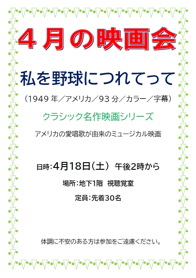 ホーム » イベント情報で学ぶ » 映画会 » 4月の映画会