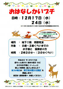ホーム » イベント情報で学ぶ » おはなし会 » 12月のおはなし会プチ
